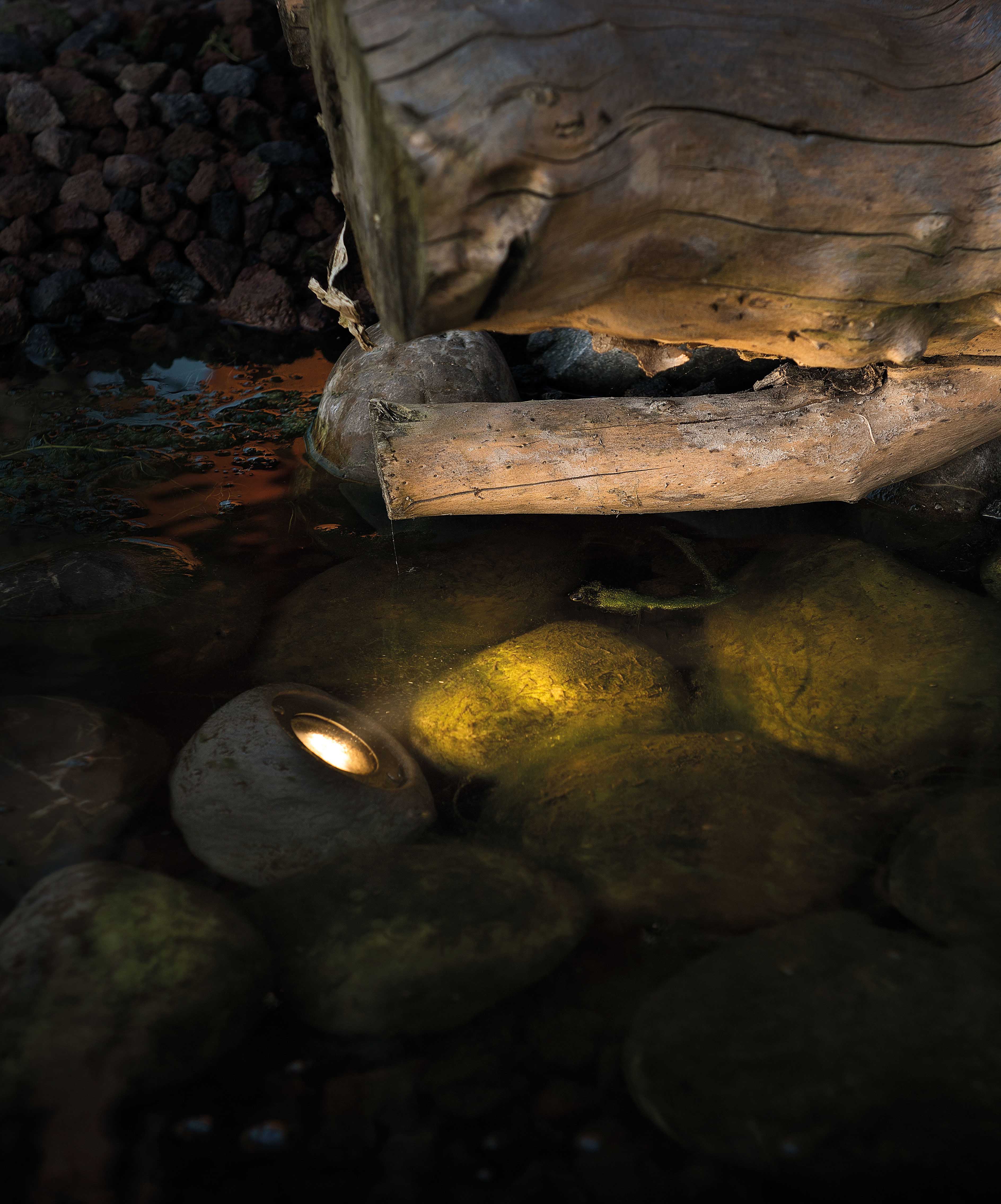 Aivan luonnollisen kiven näköinen ja painoinen kohdevalaisin jonka voi asentaa vaikkapa vesilähteeseen tai rantaveteen.